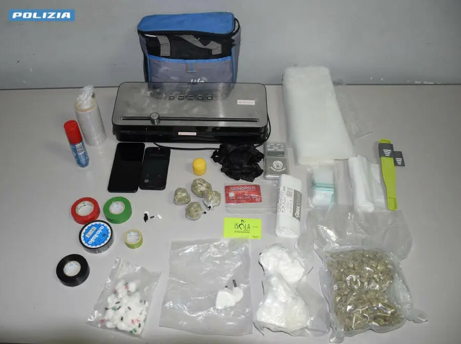 Porto Cesareo - Un giovane di 23 anni è stato arrestato ieri dalla Polizia di Stato dopo essere stato trovato in possesso di una notevole quantità di sostanze stupefacenti. Il giovane, residente a Porto Cesareo, aveva con sé 431,06 grammi di cocaina e 198,40 grammi di marijuana, oltre a materiale per il frazionamento e il confezionamento della droga e una somma di denaro in contanti.