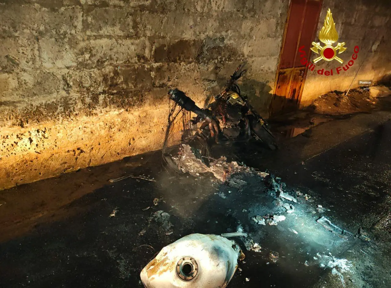 Le operazioni hanno richiesto non solo lo spegnimento del fuoco, ma anche la messa in sicurezza dell’intera area, a causa del rischio di esplosioni dovute alla presenza di carburante e altri materiali infiammabili. Fortunatamente, non si registrano feriti, né tra i residenti né tra i soccorritori. I danni si sono limitati alla sola moto, andata però completamente distrutta.