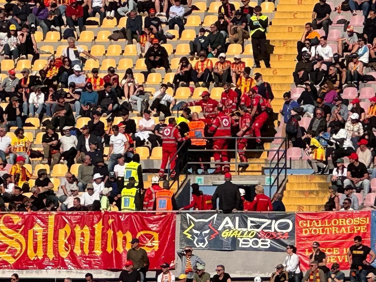 Sei interventi al Stadio Via del Mare durante il match: cinque casi risolti sul posto, un tifoso trasferito d’urgenza all’Ospedale Vito Fazzi