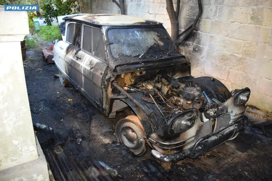 Arrestato piromane che ha dato fuoco a un’auto d’epoca a Lecce