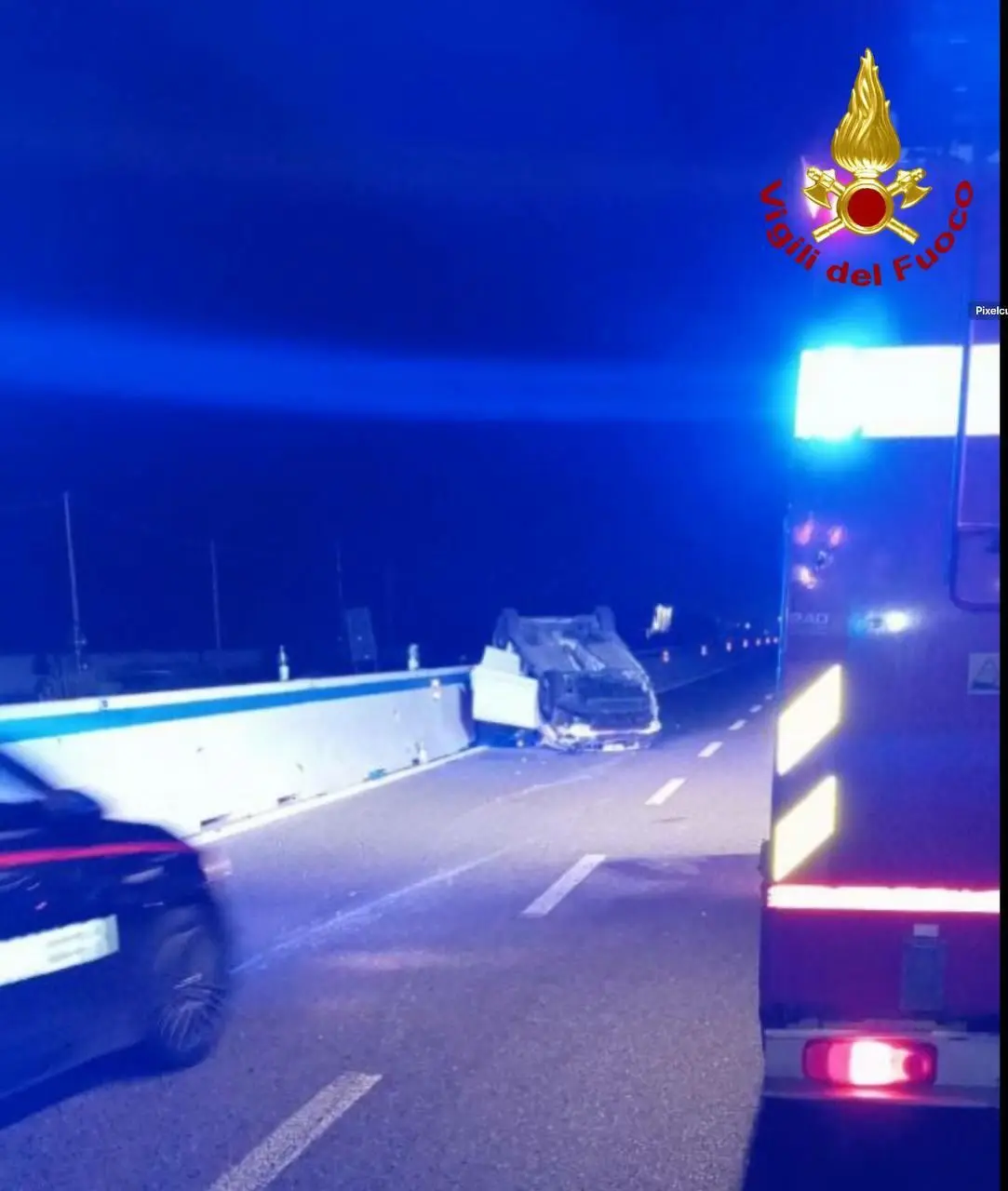L’incidente ha interessato due autovetture una delle quali ribaltata sulla stessa sede stradale.